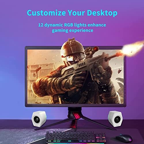 G2000 32W PC Computer Speakers for Gaming Desktop PC Laptop Mac Computer Woofer Speakers Bluetooth USB 3.5mm AUX Inputs RGB Lights Multimedia Speakers White