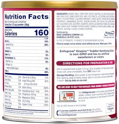 Enspire Toddler, Nutritional Drink, Immune-Supporting Lactoferrin and Brain-Supporting DHA, Natural Milk Flavor, 24 Oz Can (Pack of 4)