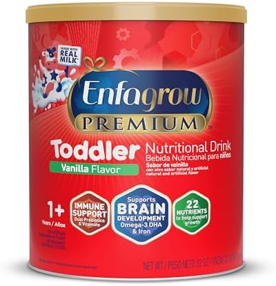 Premium Toddler Nutritional Drink, Natural Vanilla Flavor, Omega-3 DHA for Brain Support, Prebiotics & Vitamins for Immune Health, Non-GMO, Powder Can, 32 Oz (Pack of 1
