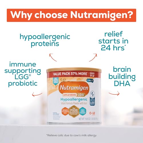Nutramigen Baby Formula, Hypoallergenic and Lactose Free Formula with Enflora LGG, Fast Relief from Severe Crying and Colic, Powder Can, 19.8 Oz (Pack of 1)