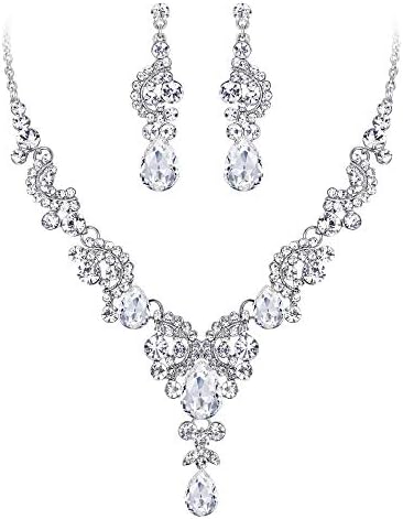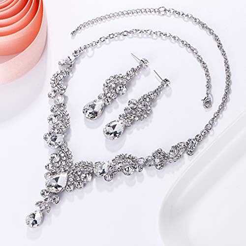 EVER FAITH Rhinestone Crystal Bridal Floral Wave Teardrop Necklace Earrings Set