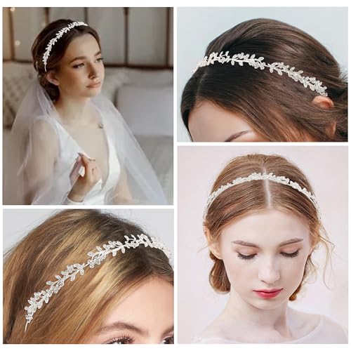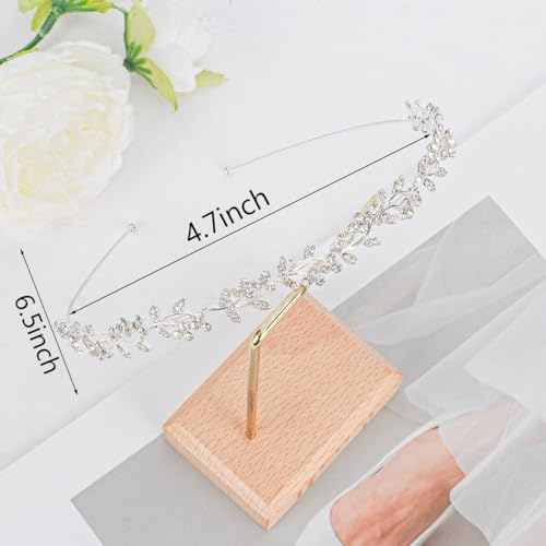 Wedding Headbands for Women Girls Bride Headband Bridal Headpieces Crystal Hair Band Silver Tiara Wedding Gifts Hair Accessories Elegant Fairy Rhinestone Handmade Leaves Flowers