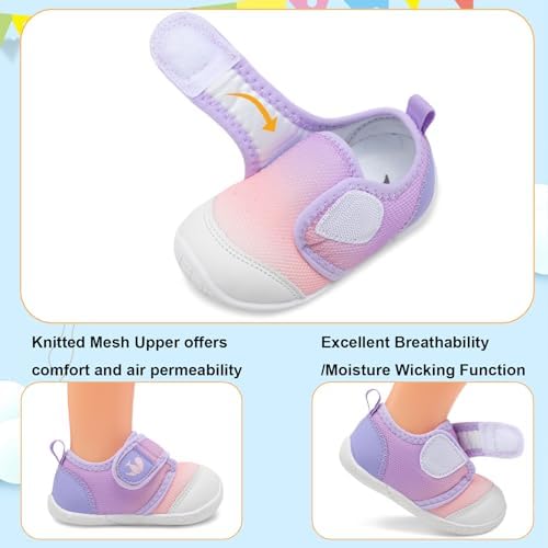 FEETCITY Baby First Walking Shoes Boys Girls Infant Sneakers Crib Shoes Breathable Lightweight Slip On Shoes