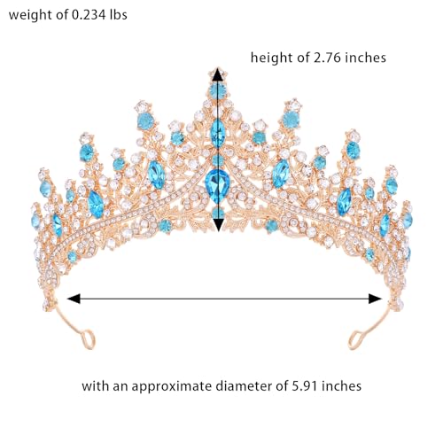 Blue Tiara for Women Crystal Queen Crowns Rhinestone Princess Tiaras for Girl Wedding Headband for Bride Hair Accessories for Halloween Costume Birthday Party Prom Mother's Gifts