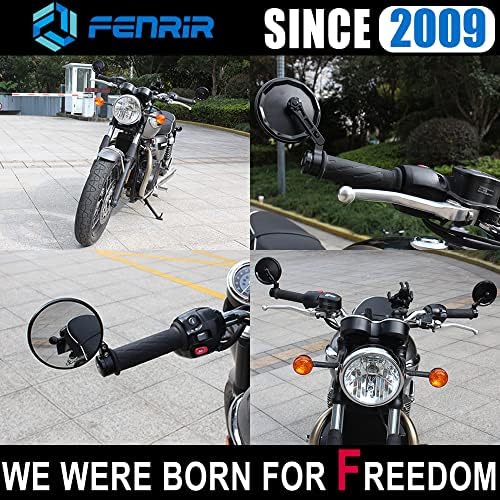 Motorcycle Handlebar Bar End Mirror CNC Forged Aluminum Alloy Black Round foldable Anti-vibration Anti-glare Large field of view For Sport Naked Street Cruiser Scooter Heritage Roadster