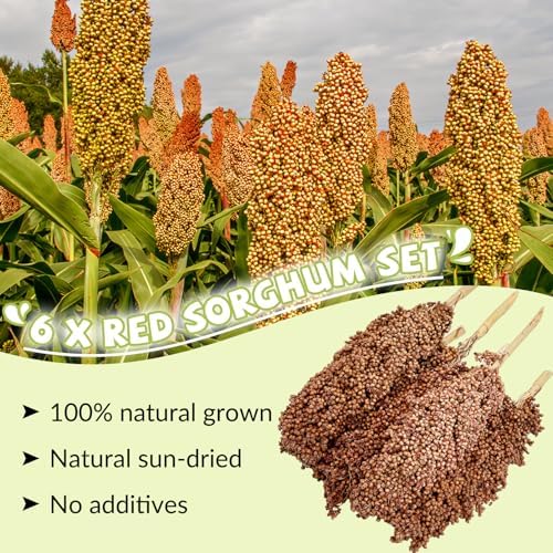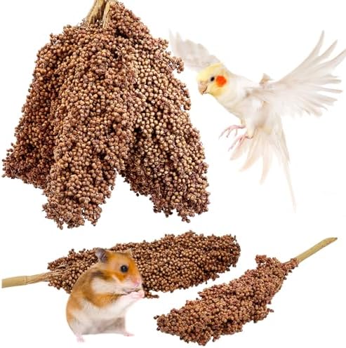 Fhiny Millet Spray for Birds, 6 PCS Natural Sun-Dried Red Sorghum Grain for Birds Seed Original Parrot Treats & Supplement Parakeet Food for Cockatiels Lovebirds Finches Budgies Pigeons Hamsters