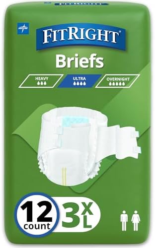 Sponsored Ad - Bariatric Adult Diapers, Ultra Heavy Absorbency, 3XL (Waist Size 65in-84in), 12 Count, Disposable Incontinence Briefs for Men and Women, Moisture-Wicking, Leak Protection,