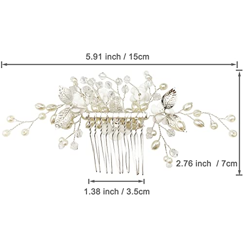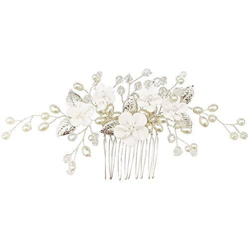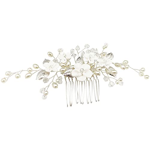 Sponsored Ad - Flower Bridal Hair Vine Pieces with Comb Pearl Floral Rhinestone Leaf White Wedding Hair Pin Accessories for Women and Girls (White Flower Silver Leaf)