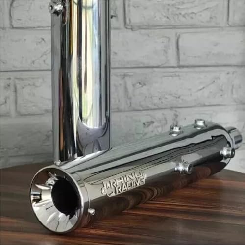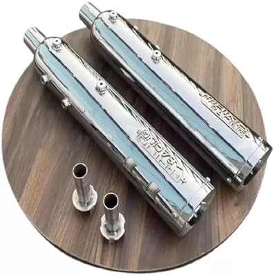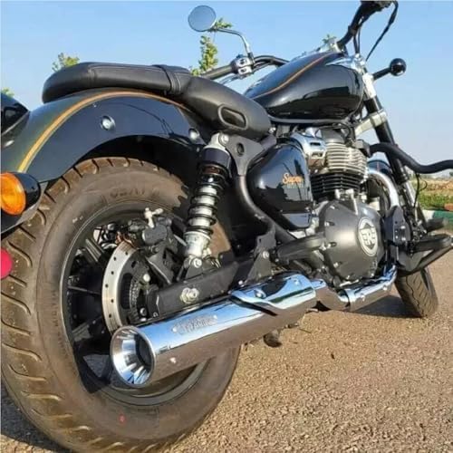 Rhino Racing Bike Exhaust Muffler | Mild Steel Chrome Finish Stainless Steel Straightcut Bike Silencer for Royal Enfied Super Meteor 650 (1 Pair, Chrome)
