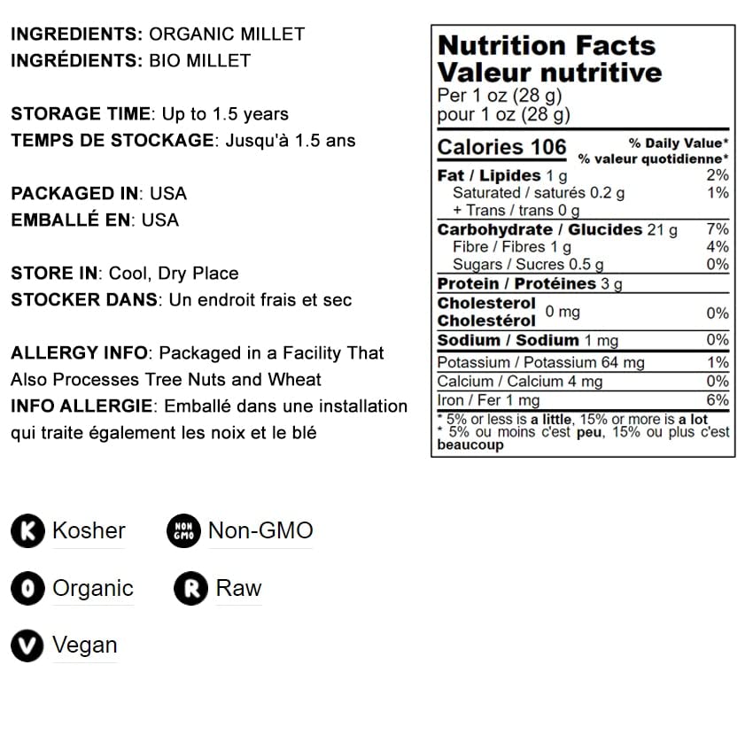 Food to Live Organic Millet Flour, 1 Pound Non-GMO, Kosher, Vegan, Stone Ground, Unbleached, Unbromated, Bulk, Product of the USA