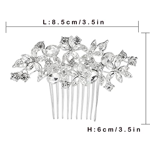 Foyte Crystal Bride Wedding Hair Comb Silver Flower Bridal Headpieces Leaf Hair Pieces Rhinestone Bridesmaid Side Combs Hair Accessories for Women (crystal silver)