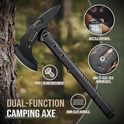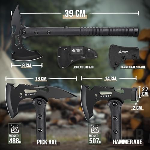 Freelander Tactical Axe 2 Pack, Sharp Tomahawk with Sheath, Portable Tomahawk with Clip and Bottle Opener, Durable Survival Hatchet for Emergency, Hiking and Camping