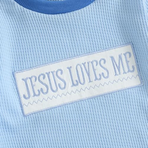 Baby Boy Fall Clothes Jesus Loves Me Embroidery Rompe Oversized Long Sleeve Bodysuit Newborn Waffle Christian Outfit