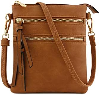 Small Lightweight Shoulder Bag for Women, Mini Multi Zipper Pocket Crossbody Handbag with Adjustable strap