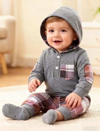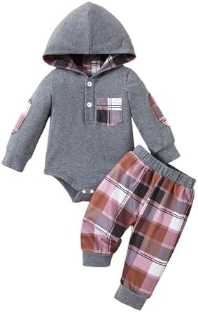Sponsored Ad - Baby Boy Clothes Long Sleeve Hoodie Romper and Plaid Pants Set Fall Winter Baby Boy Outfit 0–18 Months