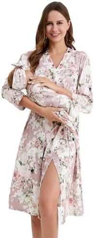 Galabloomer Vintage Maternity Robe and Baby Receiving Blanket, Matching Mommy Labor Delivery Robe and Swaddle Set