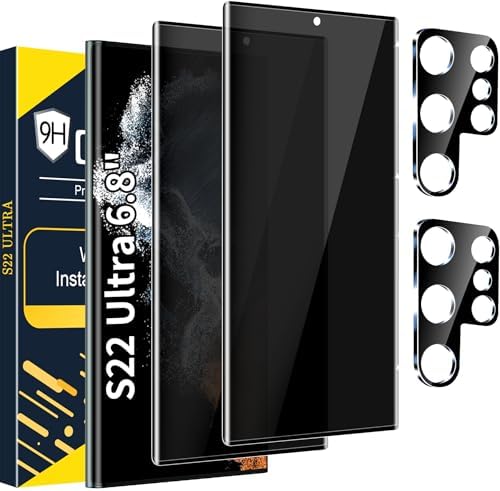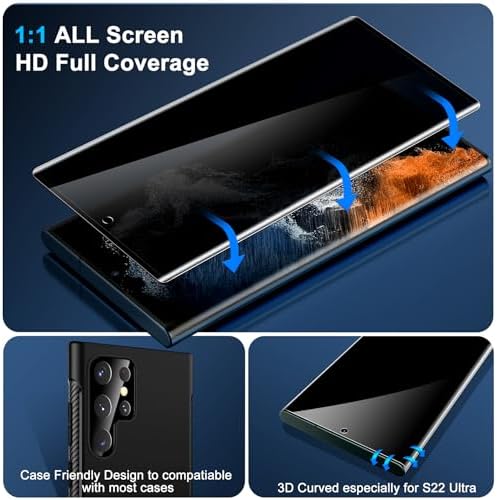 Sponsored Ad - [2+2 Pack] Galaxy S22 Ultra Privacy Screen Protector, 9H Tempered Glass, Ultrasonic Fingerprint Support, 3D Curved, HD Clear Anti-Spy Film for Samsung S22 Ultra 5G Glass Screen Protecto