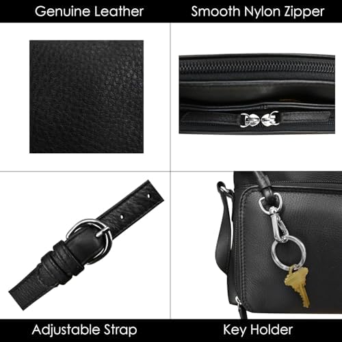Genuine Leather Crossbody Bags for Women - Premium RFID Blocking Shoulder Bag Organizer with Adjustable Strap