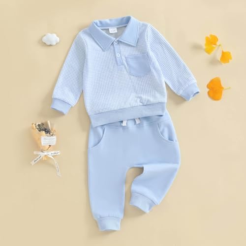 Sponsored Ad - Toddler Baby Boy Fall Clothes Plaid Long Sleeve Sweatshirt Tops + Casual Pants Sets 2pcs Infant Boy Winter Clothes