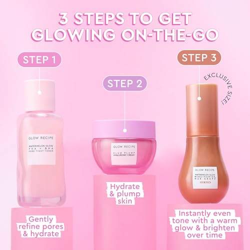 Get Glowing With Me Kit by Katie Fang - PHA + BHA Face Toner & Gentle Face Exfoliant + Plum Plump Hyaluronic Acid Moisturizer Face Cream + Hue Drops Tinted Serum (3 Count)