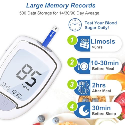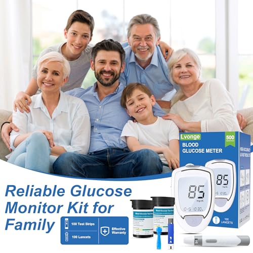 Glucose Monitor Kit, High Accuracy Blood Sugar Testing Kit with 100 Glucometer Strips & 100 Lancets, Larger-Screen Glucose Monitor with Lancing Devices, No Coding, Portable for Home or Travel