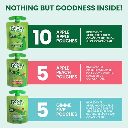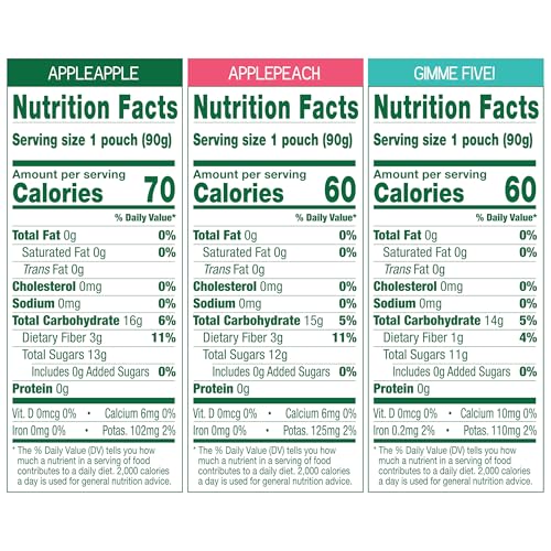 Applesauce and Fruit Puree Variety Pack, Apple, Peach & Gimme Five!, 3.2 oz (Pack of 20), Unsweetened Fruit Snacks for Kids, Gluten Free, Nut Free, BPA Free Pouches (Packaging May Vary)