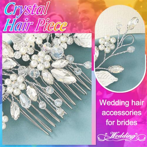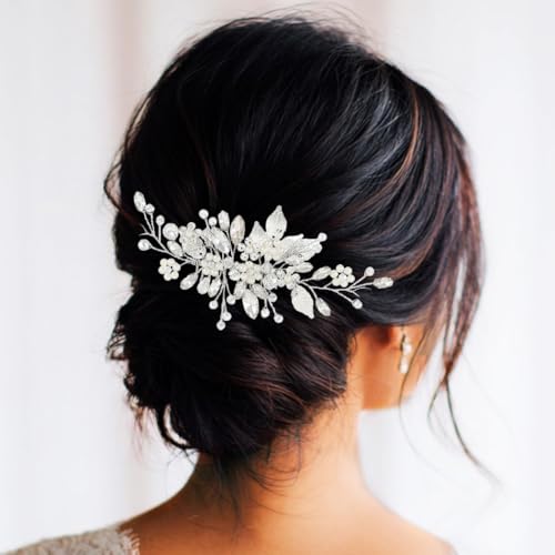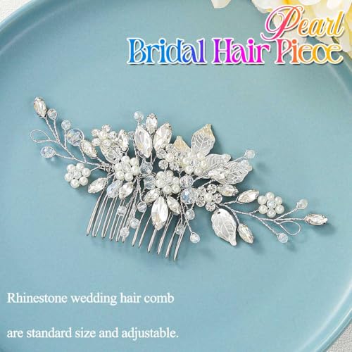 Gorais Leaf Bride Wedding Hair Comb Pearl Bridal Hair Piece Crystal Side Comb Hair Accessories for Women and Girls