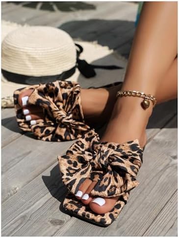 Sponsored Ad - Women's Bow Cute Sandals Trendy 2025 Graphic Print Dressy Open Square Toe Summer Slide Flat Sandals