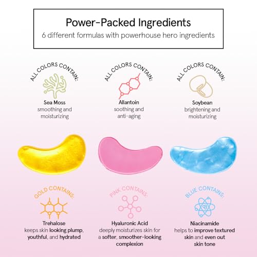 Under Eye Mask Variety Pack - 18 Pairs of Under Eye Patches for Dark Circles - With 6 Colors (3 Pairs/Color) - Gel Masks Puffy Eyes for Women - Vegan Cruelty Free Bridesmaid Gifts