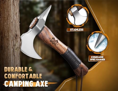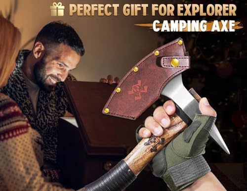 Sponsored Ad - Grumpy Bear Camping Axe 11 Inches with High Carbon Steel, Smooth Blade, Leather-Wrapped Handle, Safety Lanyard – Ideal for Wood Splitting, Hiking, Survival, and Outdoor Adventures