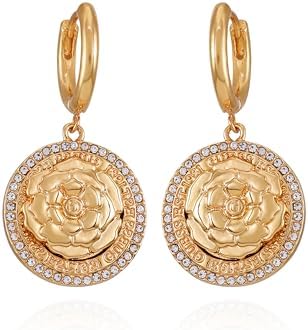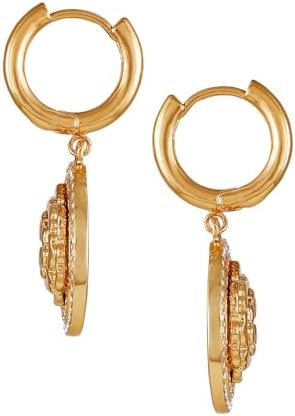 Sponsored Ad - Goldtone Crystal Stone Coin Huggie Hoop Drop Earrings