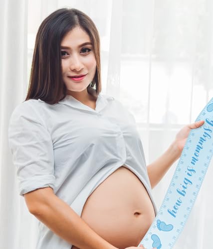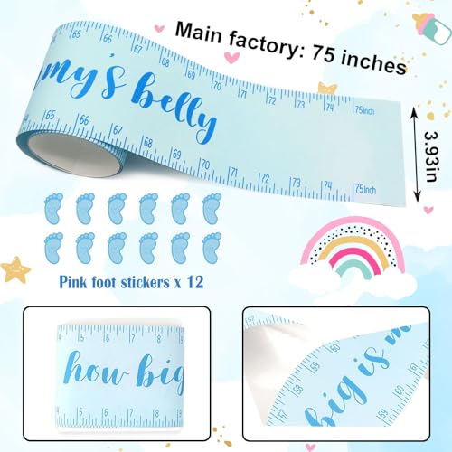 1 Roll 75 Inch Baby Shower Blue Measuring Tape Belly Measure Game with 12 Footprint Stickers Tommy Measuring Tape for Baby Shower Games Party Decorations Supplies