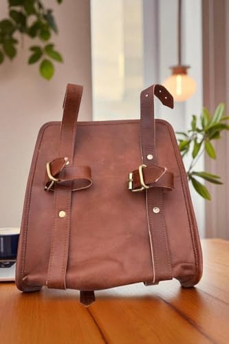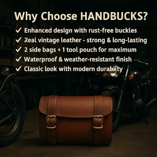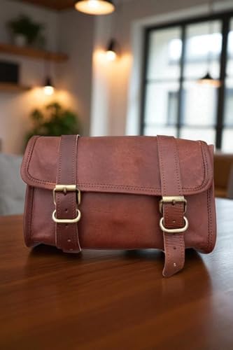 Sponsored Ad - Real Vintage Leather Motorcycle Saddle Bag with Rust-Free Buckles – 2 Side Panniers & 1 Tool Pouch for Swing Arm, Durable Waterproof Bike Storage (Brown Tool Pouch Only)