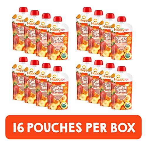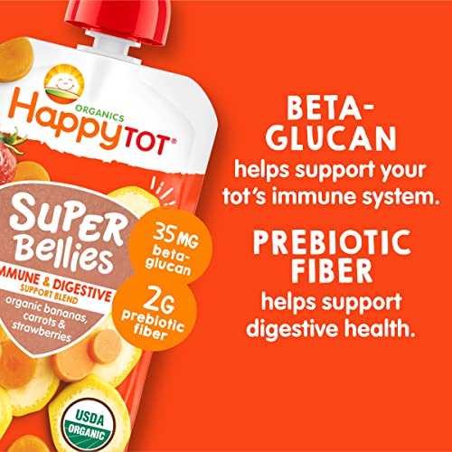 Happy Tot Organics Stage 4 Baby Food Pouches, Gluten Free, Vegan Snack, Super Bellies, Fruit & Veggie Puree, Banana, Carrot & Strawberry 4 Ounce (Pack of 16)