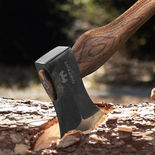 Sponsored Ad - 15.3" Hatchet, Splitting Axe with 1065 High Carbon Steel, Camping Hatchet with Beech Wooden Handle and Leather Sheath, Chopping Axe for Wood Splitting and Kindling