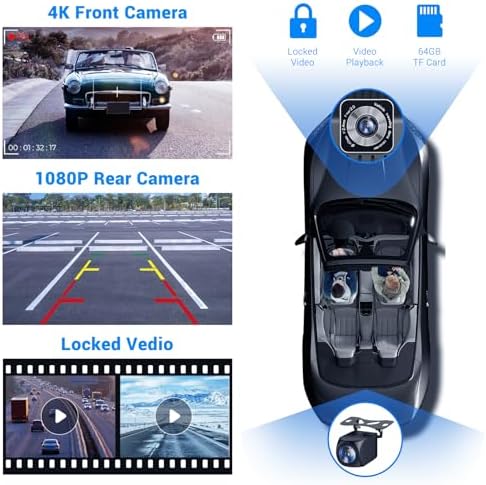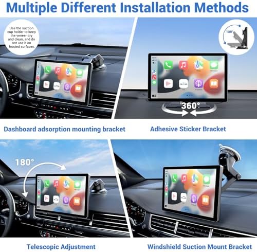 Wireless Apple Carplay Screen for Car 4K Dash Cam, 9" Portable Apple Carplay & Android Auto Car Stereo, with 1080p Backup Camera, GPS Navigation/Mirror Link/Voice Control/Bluetooth