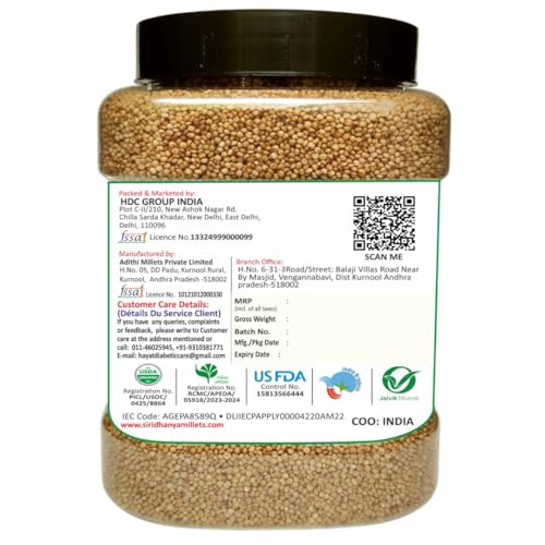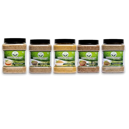 Siridhanya Millets Grain Unpolished & organic Combo Pack of 5, [Little 500g, Foxtail 500g, Kodo 500g, Barnyard 500g, and Browntop 500g Millet], Naturally grown from south india