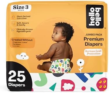 Premium Baby Diapers Size 3, 25 Count of Disposable, Extra-Absorbent, Hypoallergenic Baby Diapers with Snug and Comfort Fit, Alphabet Soup