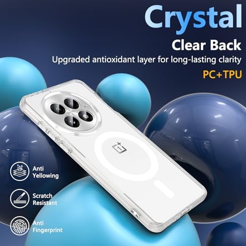 Magnetic for OnePlus 13 Case [Compatible with MagSafe] Translucent Shockproof Slim Fit Military Grade Drop Proof Protection Anti-Fingerprint Cover Phone Case for OnePlus 13 5G 2025(Clear)