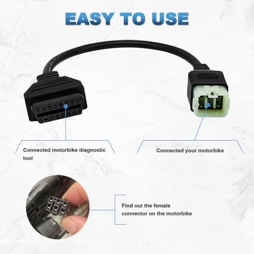 OBD2 Adapter Cable Fit for Royal Enfield Classic 350 Reborn, Himalayan 411, Interceptor 650, Continental GT 650/535 Motorcycle 6 Pin to 16Pin Diagnostic Cable, Work with ELM327 ObdII Code Reader