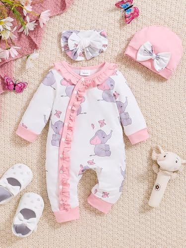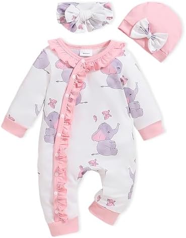 Newborn Baby Girl Clothes Infant Floral Print One-Piece Romper+Jumpsuit+Bodysuit+Hat+Headband