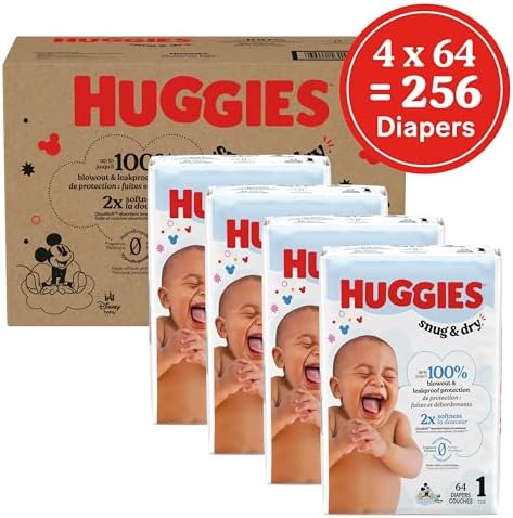 Size 1 Diapers, Snug & Dry Newborn Diapers, Size 1 (8-14 lbs), 256 Count (4 Packs of 64), Packaging May Vary