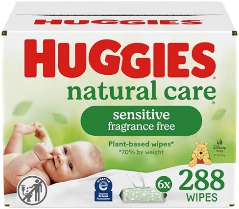 Natural Care Sensitive Baby Wipes, Unscented, Hypoallergenic, 6 Flip-Top Packs (288 Wipes Total)