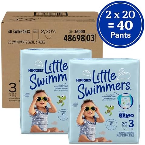 Little Swimmers Disposable Swim Diapers, Size 3 (16-26 lbs), 40 Ct (2 packs of 20), Packaging May Vary