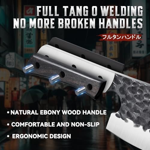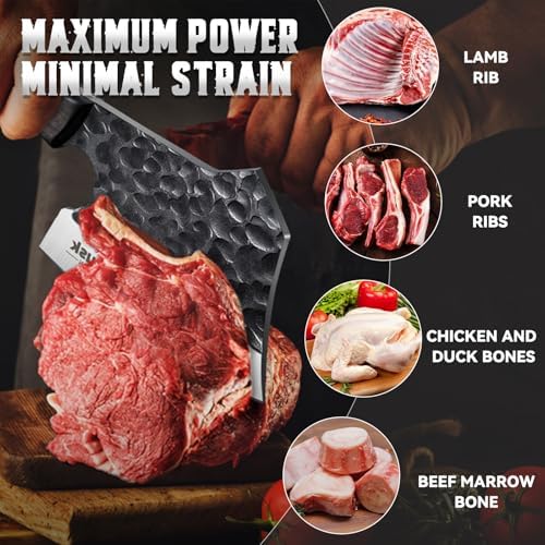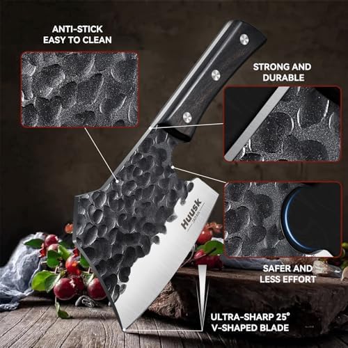 Huusk Meat Cleaver Knife Heavy Duty Bone Chopper, Hand Forged Kitchen Axe with Sheath, Full Tang Bone Chopping Knife, Japanese Butcher Knife for Meat Cutting, Kitchen Father Gift Idea Men