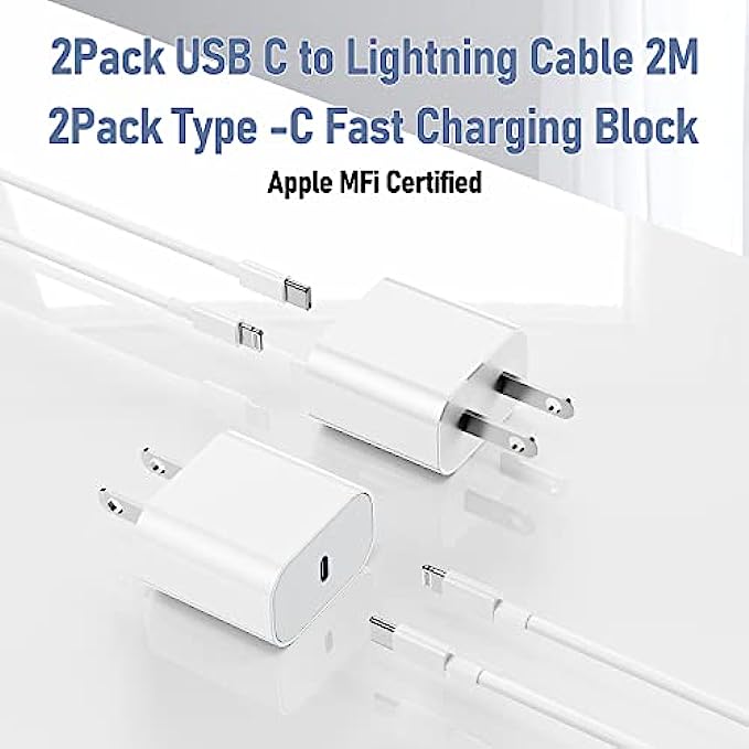 iPhone 11 12 13 Fast Charger,20W Apple Fast Charger with USB C to Lightning Cable 6ft (MFi Certified),Type C Fast Wall Plug with Cord for iPhone Mini/Pro/Pro Max (2-Pack)