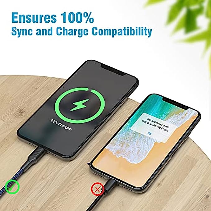 • Excellent Compatibility: iPhone charger cable can ensure compatibility with iPhone 12/12 Pro 11 / 11 Pro / 11 Pro Max / XS / XS Max / XR / X / 8 Plus / 8/7 Plus / 7 / 6sPlus / 6s / 6 Plus / 6 / 5s / 5c / 5, iPad Pro / iPad Air / Air 2 / iPad mini /mini 2 / mini 4 / iPad 4th generation, iPod Touch / iPod Nano 7th generation,etc. fully charged and Synchronous compatibility