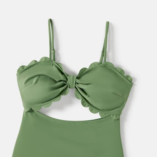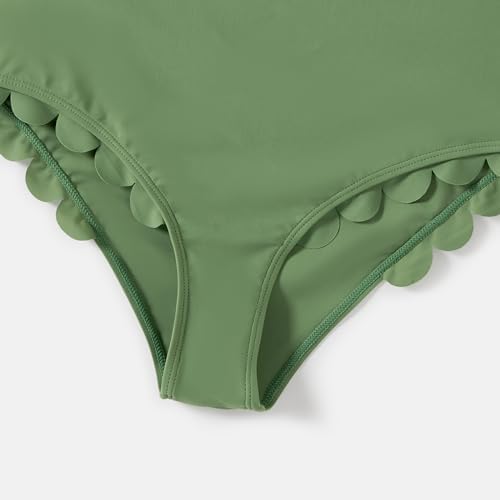 IFFEI Mommy and Me Matching Outfits Women's One Piece Swimsuits Cutout Scallop Trim Monokini Swimwear Bathing Suit