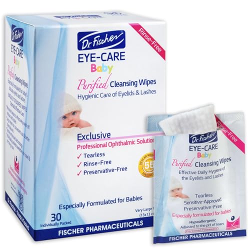 Purified, Non Irritating, Tear Free, Hypoallergenic & Sensitive Approved Baby Eyelid Wipes by Dr. Fischer – Pre-moistened, Rinse Free and Pediatrician Recommended - (30)