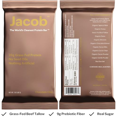Jacob Bar, Protein Bars, Chocolate (9 Bars Total) - 20g Grass-Fed Protein, No Seed Oils, Nothing Artificial